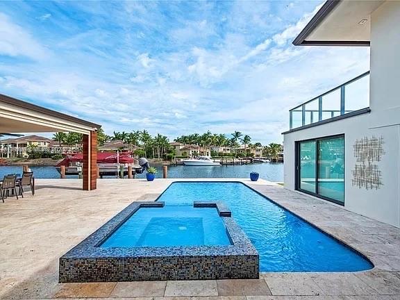 HOLLYWOOD GOLF ESTATES SEC TWO 56-8 B LOT 11 LESS PT DESC AS,COMM AT NW COR OF LOT 11,ELY 30 TO POB,ELY 100 TO P/C,SLY 10, WLY 100.38 TO POB Discover elegance in this stunning 2-story waterfront home within a gated community. Surrounded by lush landscaping, it boasts a spacious deck, boat lift, new pool with Jacuzzi/spa, and outdoor kitchen with a barbecue. With 90 feet of water frontage, enjoy direct access to the Ocean. gourmet kitchen with Electrolux appliances, 2 ovens, wine cellar, and oversized island. Smart home system controlling lighting, sound, and security. With 6 bedrooms, 4 & 1/2 baths, and private two-car garage, this home includes impact-resistant glass and gas water heaters. Located in Hollywood Golf Estates, just a short walk to the beach or Diplomat Golf & Tennis Resort. INVESTORS: AIRB&B Friendly Neighbor Allowed SHORT TERM RENTALS Great income last 3 years. Sell includes FURNITURES, UTENSILS & 1 NEW JET SKI.